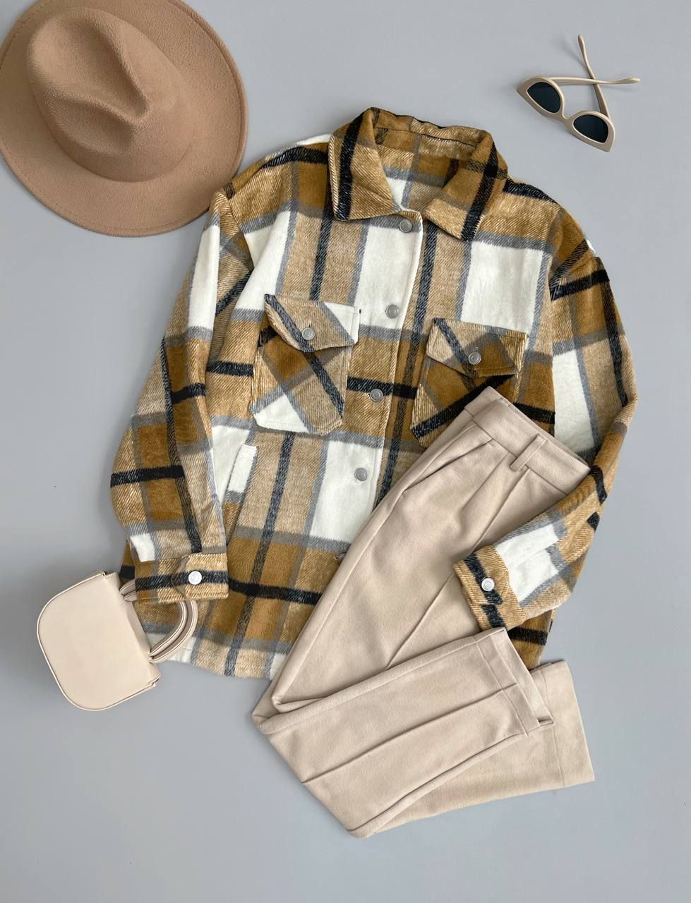 سایزS: دور سینه ۱۱۲ سانت ، دور بازو ۵۸ سانت ، قد آستین از کنار یقه ۶۷ سانت ، قد ۷۰ سانت